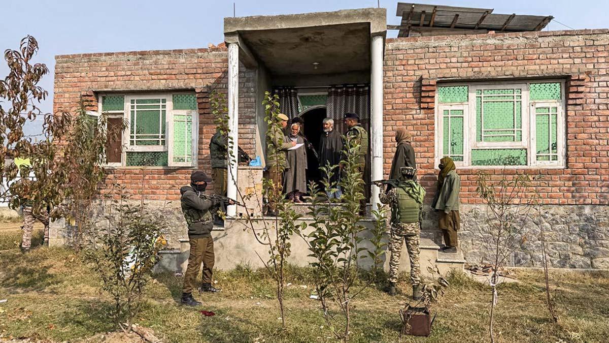 IMAGE: Police personnel in action in Kulgam, here and below, amid the massive crackdown launched to dismantle the terror ecosystem. Photograph: Amr Abdallah Dalsh/Reuters
