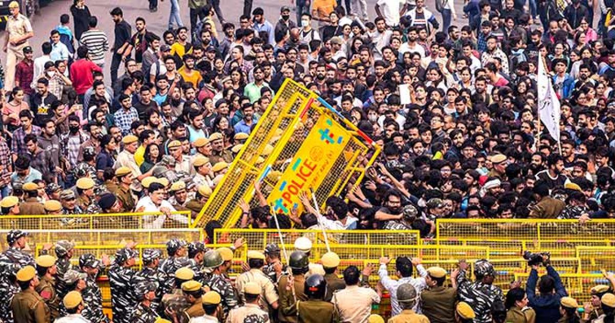 Several blockades put up by the police were also broken by the protesting students, who started their march towards the AICTE, about 3 km away from the university's south Delhi campus, around 11.30 am.