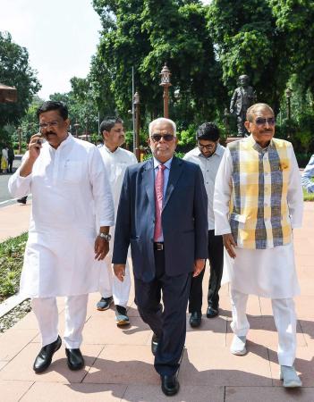 Former Supreme Court judge B Sudershan Reddy -- the joint candidate of the Opposition parties -- filed his nomination papers for the for the vice-presidential election on Thursday, August 21, 2025.