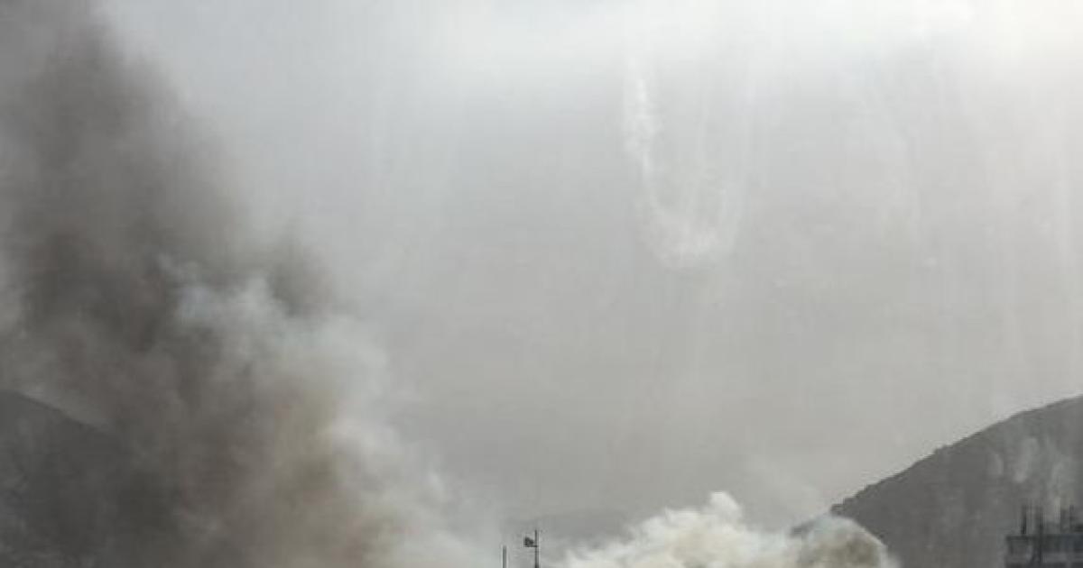 Image: Smoke emanates from the site of the bomb blast at Kabul. Photograph: @SMasudAlam/Twitter