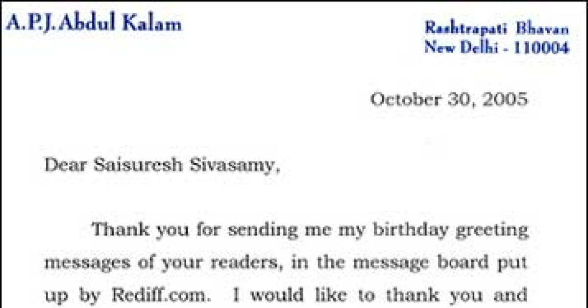 When President A P J Abdul Kalam turned 74 recently, we asked our readers to post their birthday wishes and handed over the same to Rashtrapati Bhavan.