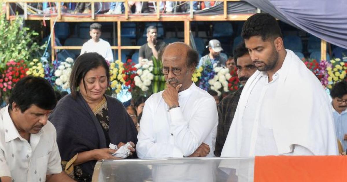 At the Kanteerava Stadium in Bengaluru, superstars Rajinikanth and Chiranjeevi, multi-lingual actress Lakshmi of Julie fame, Telugu star Mohan Babu and Kannada actor Shivrajkumar paid homage to the late actor-politician.