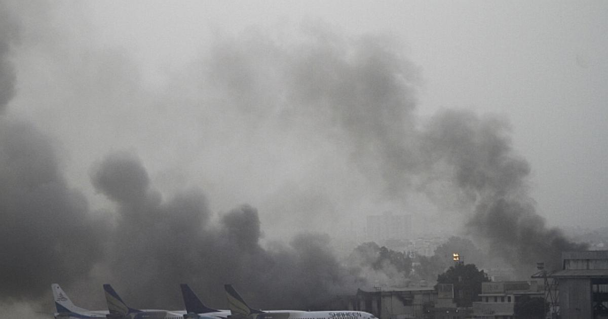 Image: Smoke billows from the Jinnah International Airport in Karachi after members of the Tehreek-e-Taliban Pakistan attacked it on Sunday.