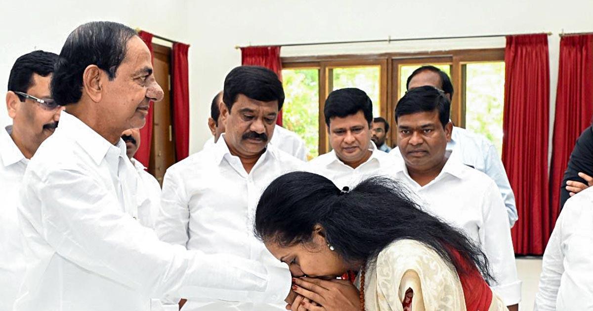 IMAGE: KCR blesses Kavitha who touches her father's feet.