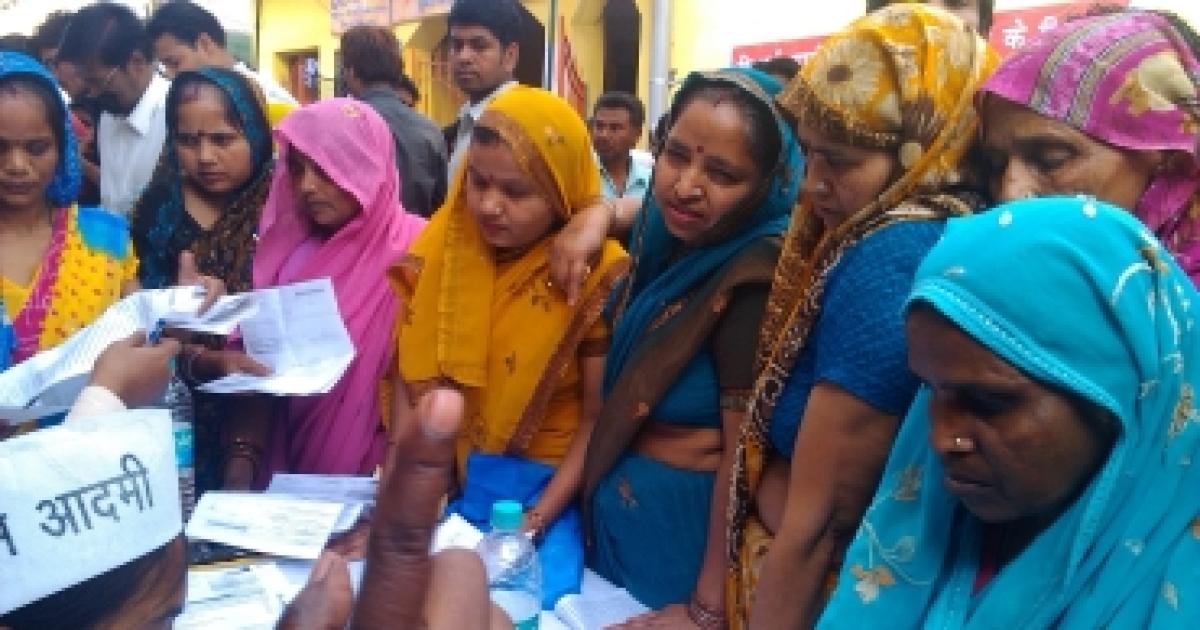 Image: Women near the help desk set up by the Aam Aadmi Party