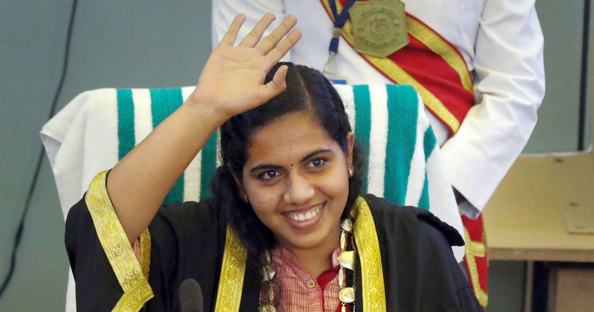 A college student and a Communist Party of India-Marxist member, she was administered the oath of office by collector Navjot Khosa at the corporation council hall.