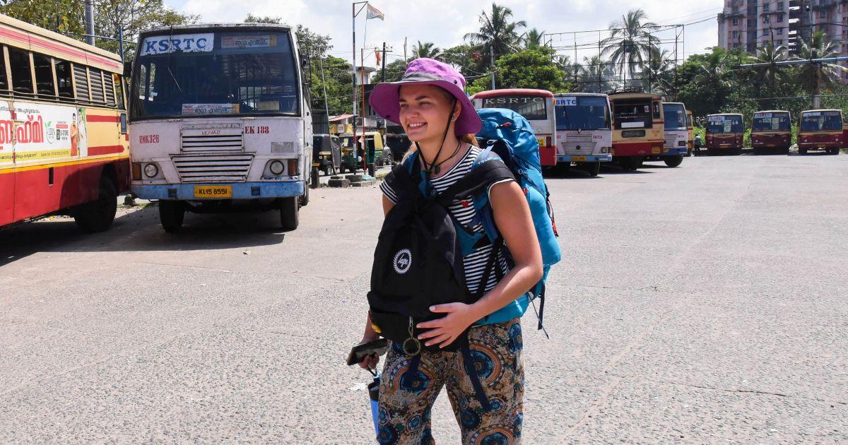 IMAGE: A foreign tourist at the Ernakulam bus stand of Kerala State Road Transport Corporation, during the hartal called by Popular Front of India (PFI) in protest against the nationwide arrest of its leaders by National Investigation Agency and Enforcement Directorate, in Kochi, Friday, September 23, 2022. Photograph: PTI photo