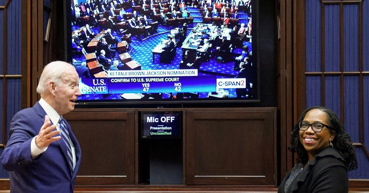 "This is a great day for our country and for our democracy, and I know that our judiciary and people will be strengthened by Judge Jackson's service, as she will bring both a deep and thorough understanding of the law and lived experiences that will bring new perspectives into the Court's chambers," he said.