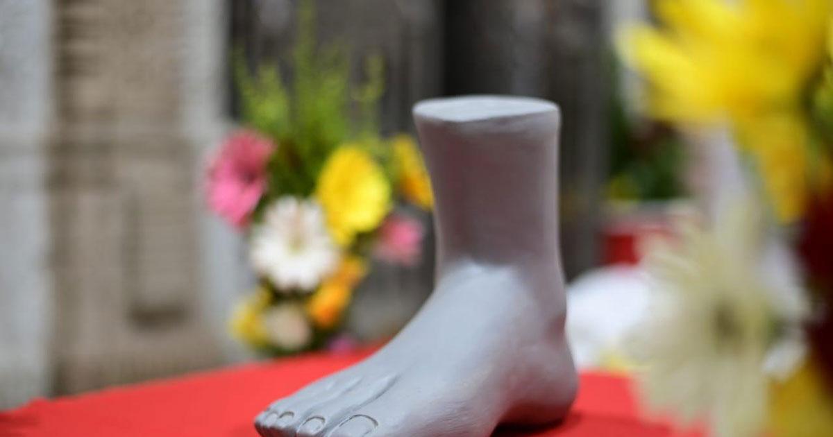 At an auspicious time, weeks before the festival begins, a single foot that forms the beginning of the idol is worshipped.