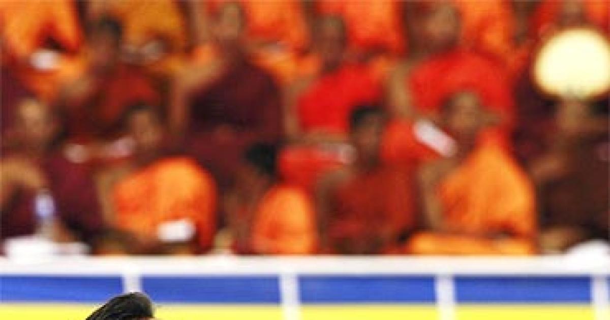 Image: Sri Lanka's President Mahinda Rajapaksa prays with thousands of Buddhist monks during a special religious ceremony before the elections in Colombo, on Sunday