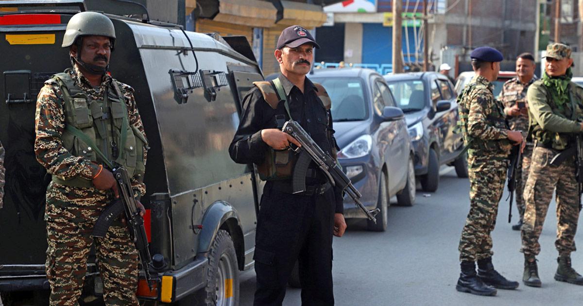 IMAGE: Security personnel stand guard in Pampore, Jammu and Kashmir after India launches 'Operation Sindoor' in Pakistan and PoK. Photograph: Umar Ganie for Rediff.com