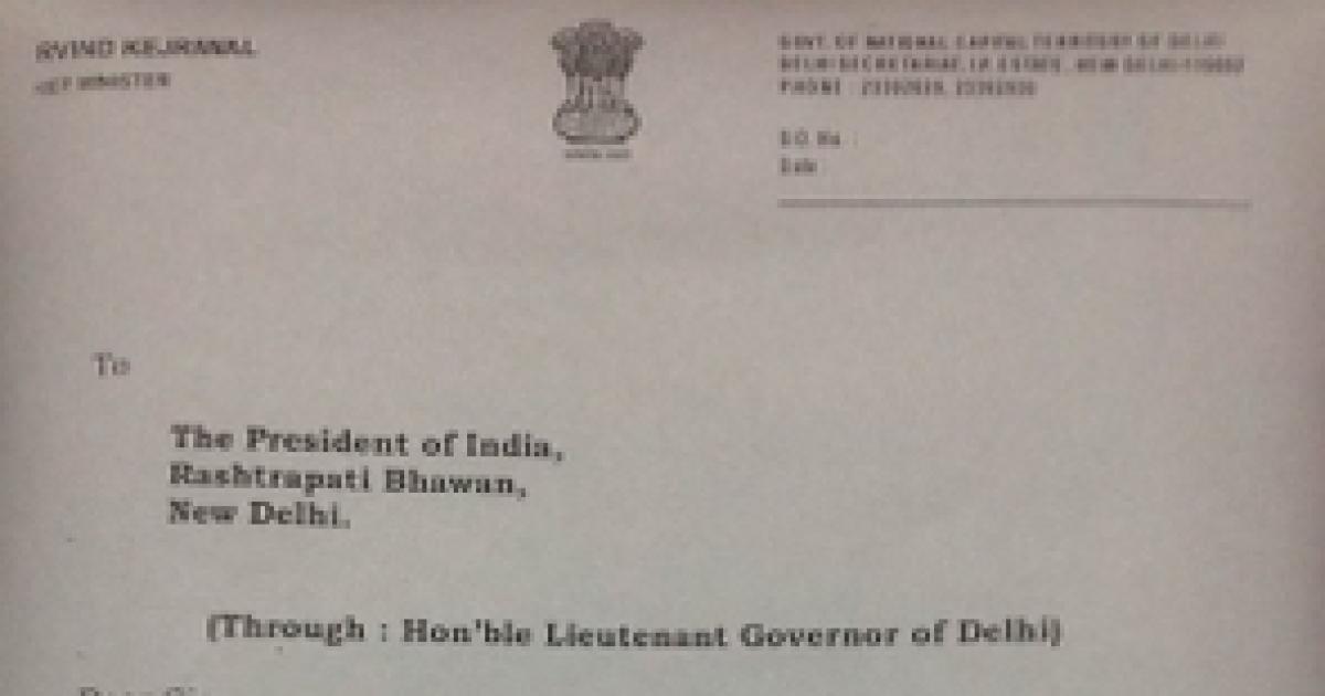 Image: Arvind Kejriwal's letter to the President of India ' Photograph Courtesy: https://www.facebook.com/AamAadmiParty/