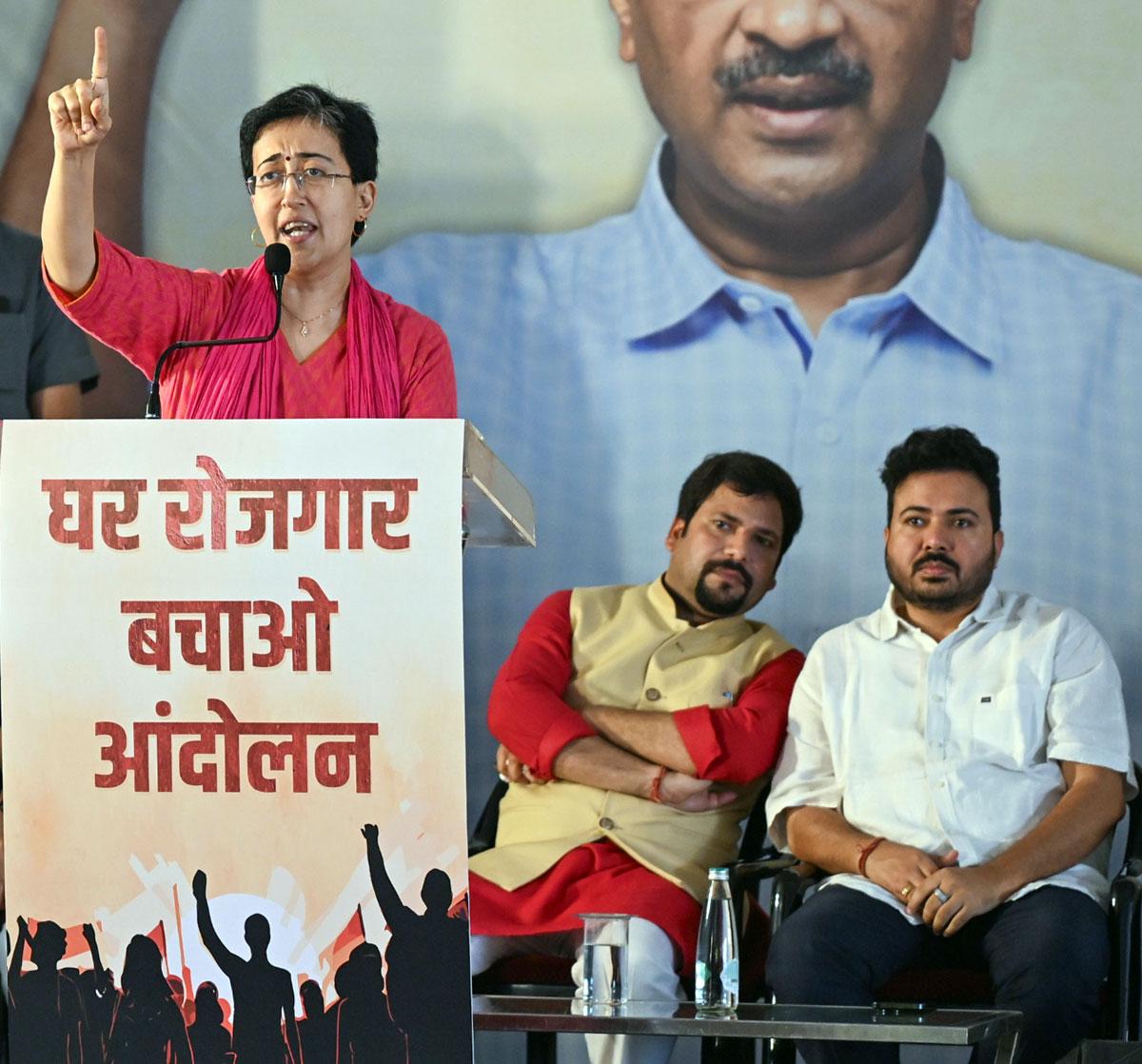Kejriwal urged the slum dwellers to protest against the BJP-led government's demolition drives and called on them to reject both the BJP and Congress in future elections.