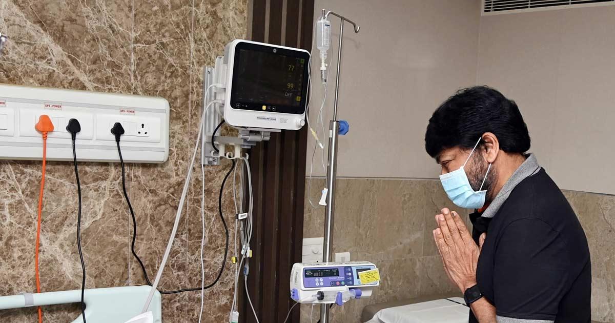 IMAGE: Telugu movie star Chiranjeevi called on former Telangana chief minister K Chandrasekhar Rao who underwent left hip replacement surgery after he fell in his farmhouse in Erravalli on December 7, at the Yashoda Hospital in Hyderabad on Monday, December 11, 2023. Photograph: ANI Photo