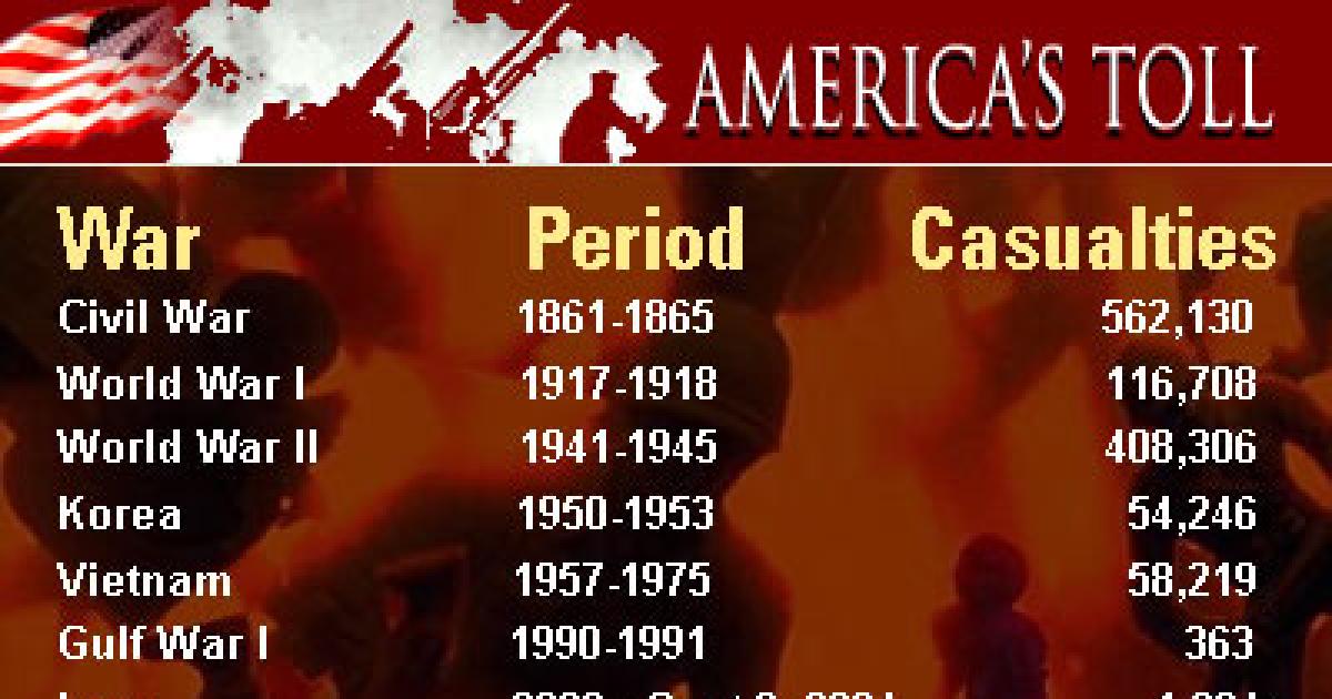 A quick look at how many American troops have died in major campaigns from the Civil War onwards.