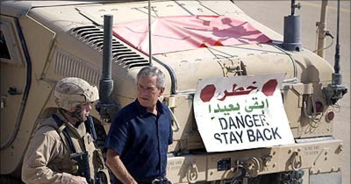 Image: President Bush with a US marine as he tours al-Asad Air Base in Anbar Province of Iraq.