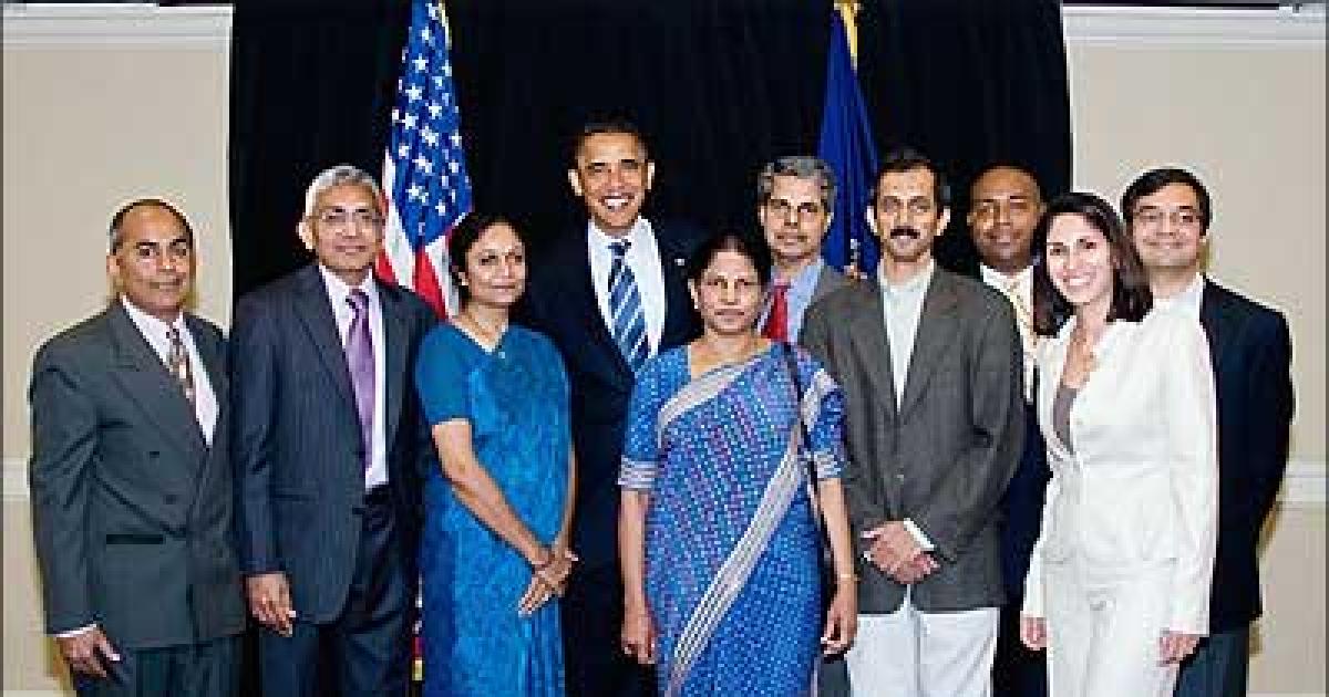 Image: (From left) Ravi Balu, S K Reddy, Anita Sharma, Senator Obama, Mrs S K Reddy, Dr Brahma Sharma, Ganesh Mani, Warner Maclin, Gunjan Kedia and Sridhar Tayur