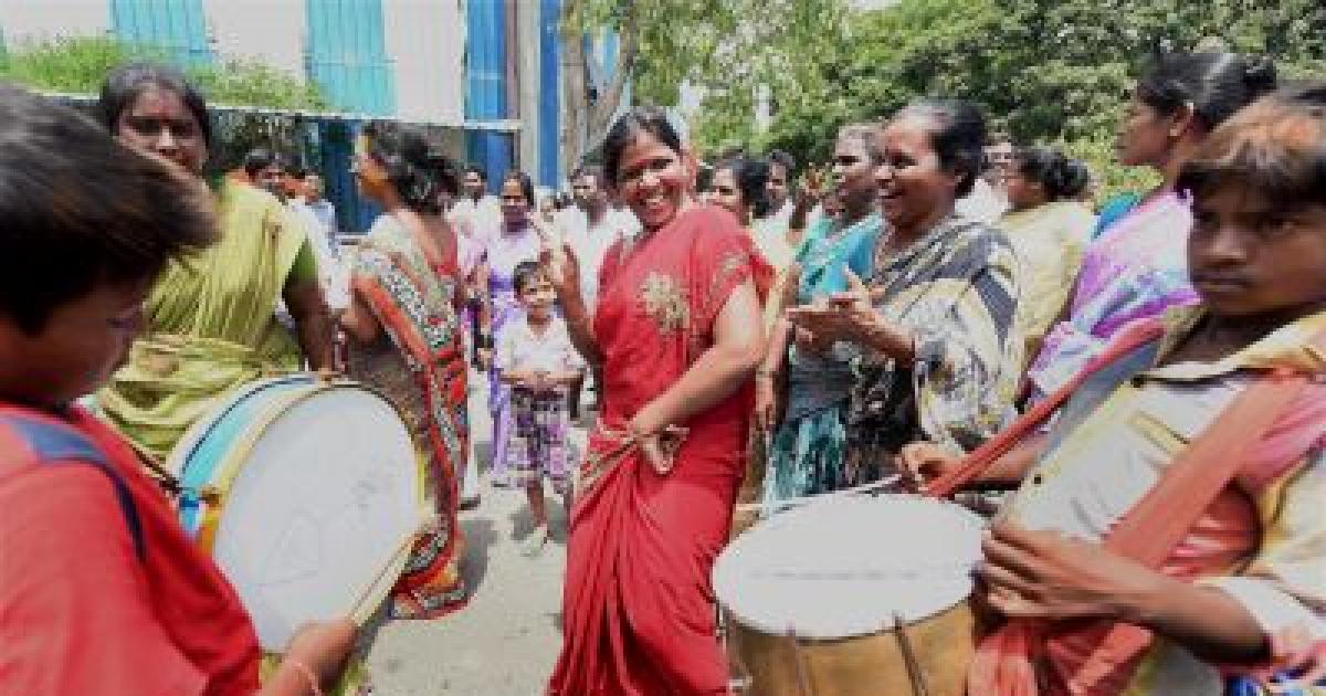 Image: AIADMK workers celebrate their party's spectacular performance in the Lok Sabha elections from Tamil Nadu. Photograph: PTI Photo.