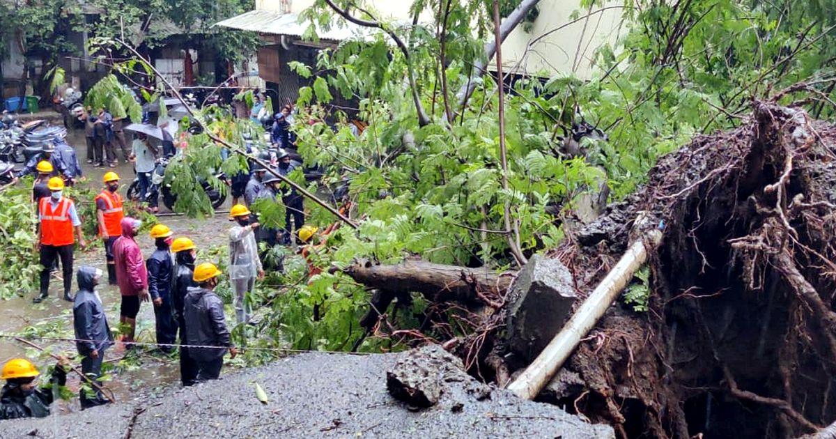 Four trees fell in Datta Wadi area of Mumbra, following which local firemen rushed to the spot.