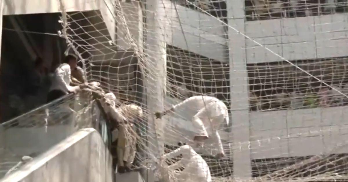 Zirwal, his fellow Nationalist Congress Party legislator Kiran Lahamate and Bharatiya Janata Party tribal MP Hemant Savara were among those who jumped from the third floor onto the safety net installed on the second floor, a precaution taken in response to previous suicide attempts at the sit.