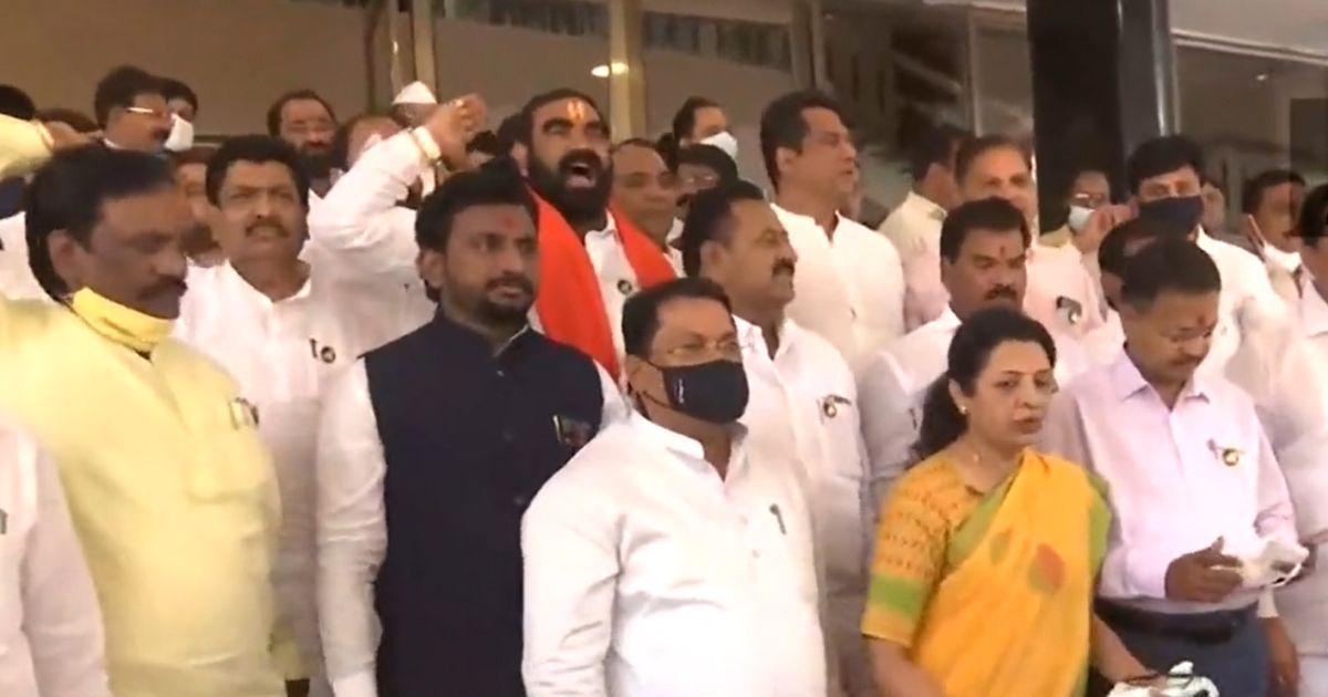 State NCP president and Water Resources Minister Jayant Patil claimed the MVA legislators shouted slogans hailing Shivaji Maharaj, while the opposition Bharatiya Janata Party raised "low level" slogans, which the governor could not tolerate and left without waiting for the national anthem.