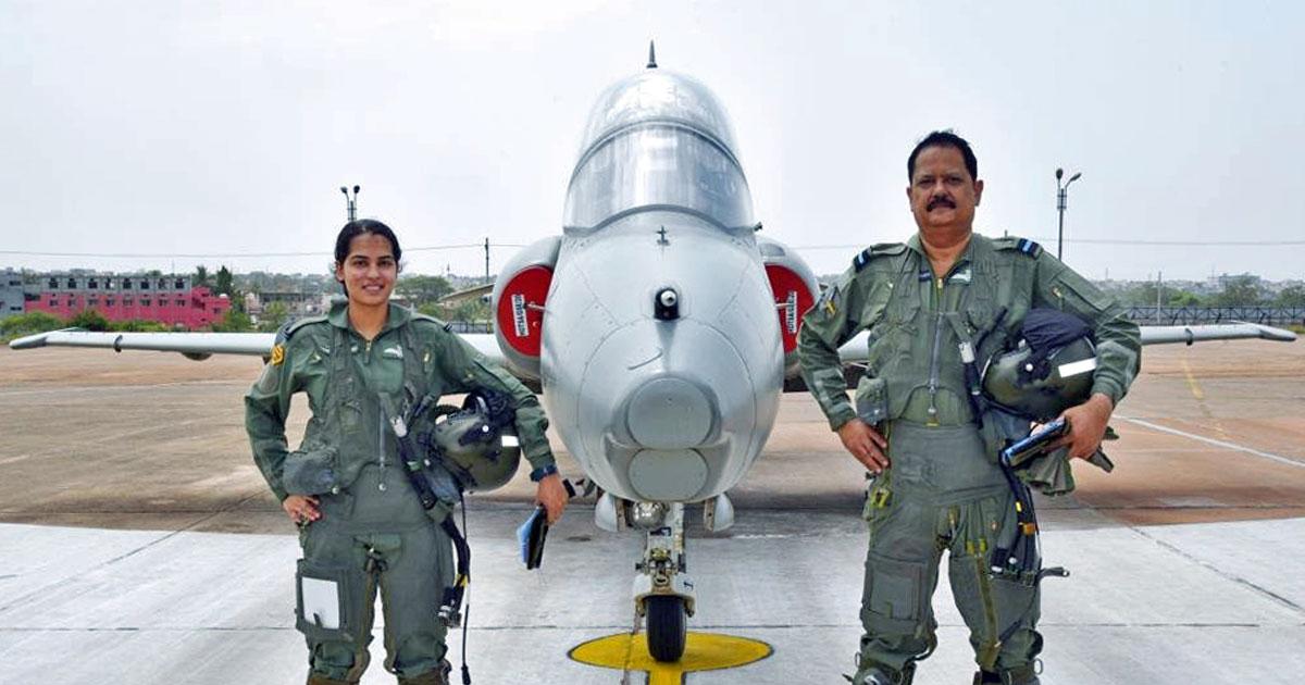 IMAGE: Father-daughter duo, Flying Officer Ananya Sharma and Air Commodore Sanjay Sharma created history when they flew in the same formation of Hawk-132 aircraft at IAF Station Bidar, where Flying Officer Ananya is undergoing her training before she graduates onto superior fighter aircraft. Photograph: ANI Photo