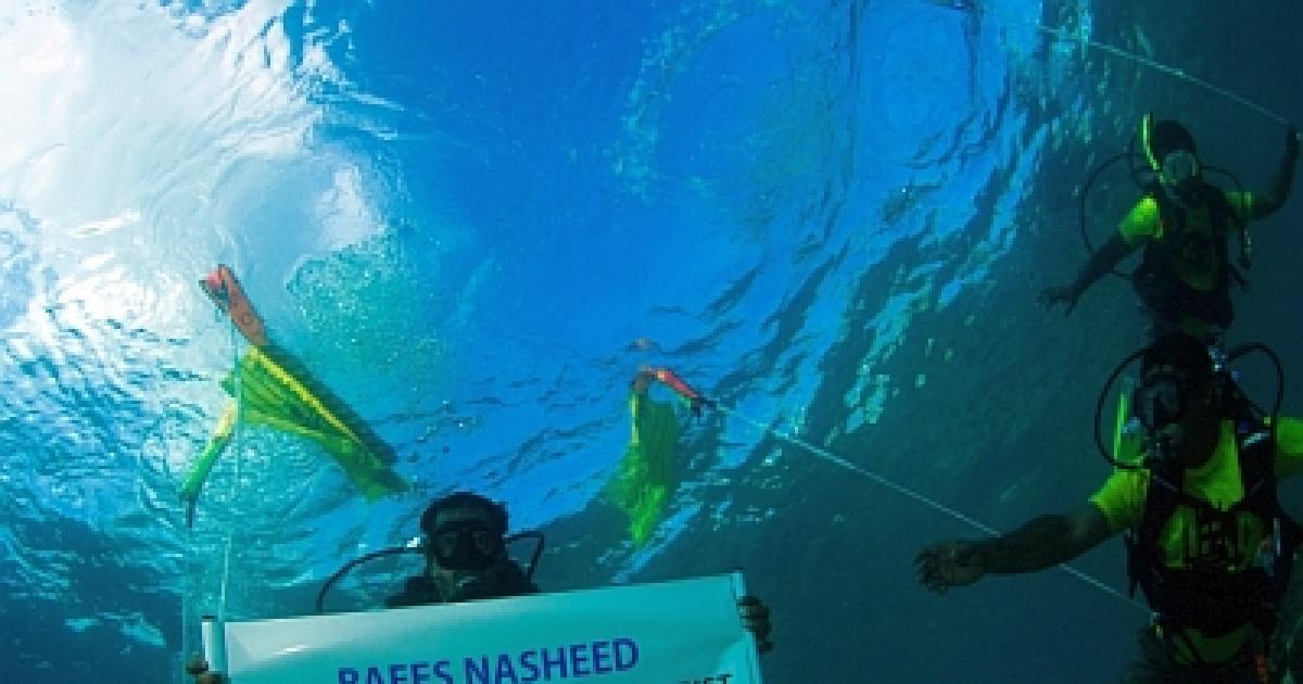 "Underwater protest in Maldives for climate hero @MohamedNasheed," Nasheed aide Paul Roberts said on Twitter.