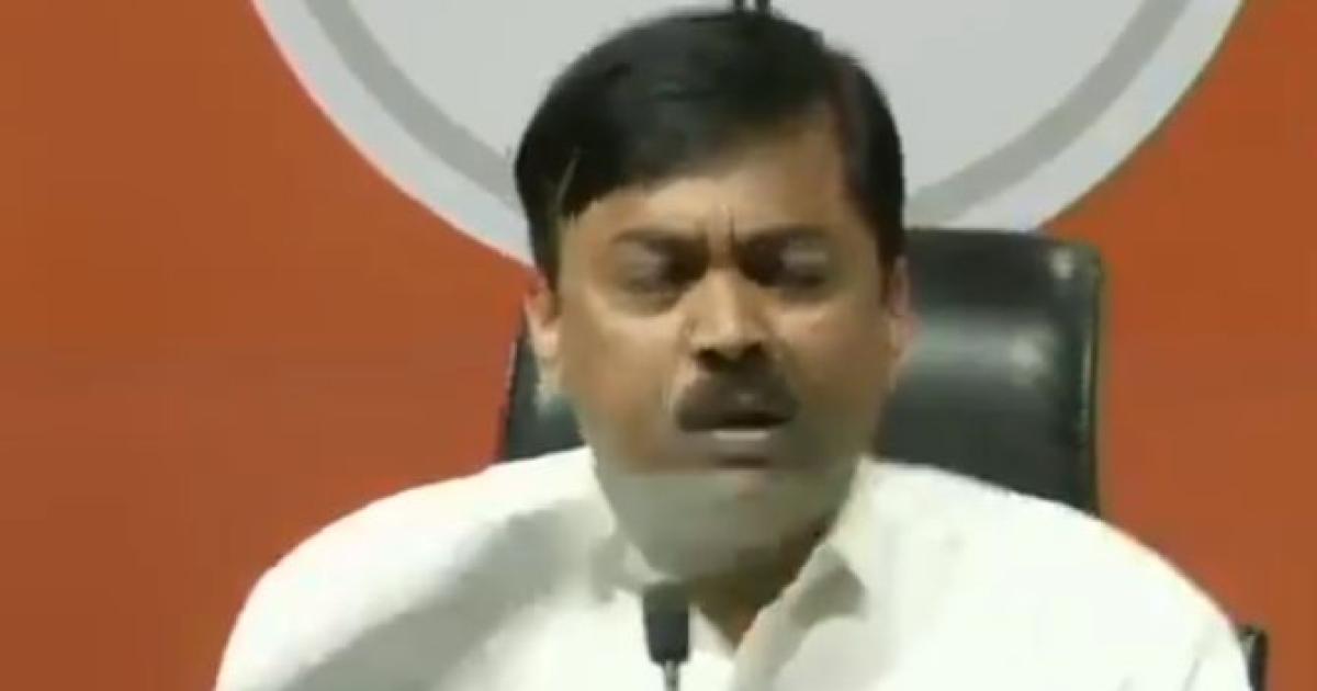 The incident took place when a scheduled press conference of BJP leaders Bhupendra Yadav and G V L Narasimha Rao was on.