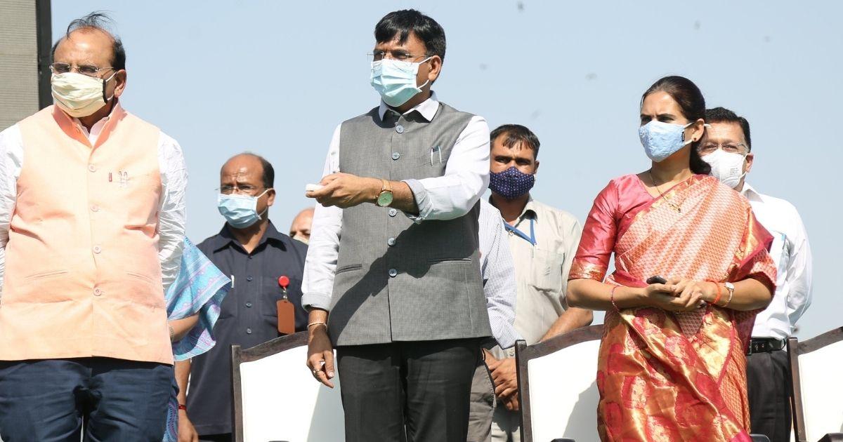 "Today India created history. It's a story of Prime Minister Narendra Modi's sankalp. 100 crore vaccine is a story of Atma Nirbhar Bharat," Mandaviya said at the event.