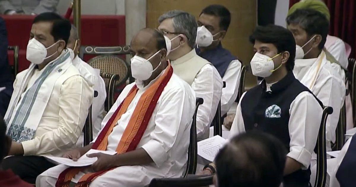 Only one family member of each minister was allowed. Vice-President Venkaiah Naidu and Lok Sabha Speaker Om Birla, besides a few top officials including P K Mishra, principal secretary to the prime minister, were also in attendance.
