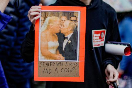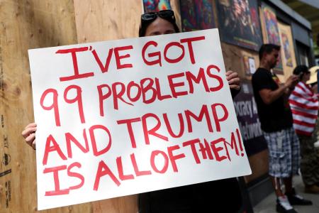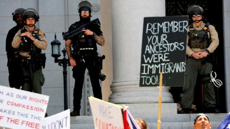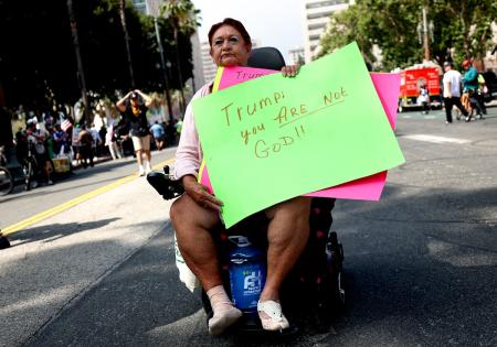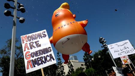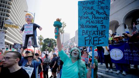 The nationwide protests, held in nearly 2,000 locations, came amid rising tensions, with scenes of civil unrest including freeway blockades and burning vehicles in LA.