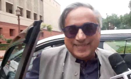 "Maunvrat, maunvrat," Tharoor told reporters, smilingly after being asked about today being an important day given the 16-hour-long discussion scheduled on Operation Sindoor.