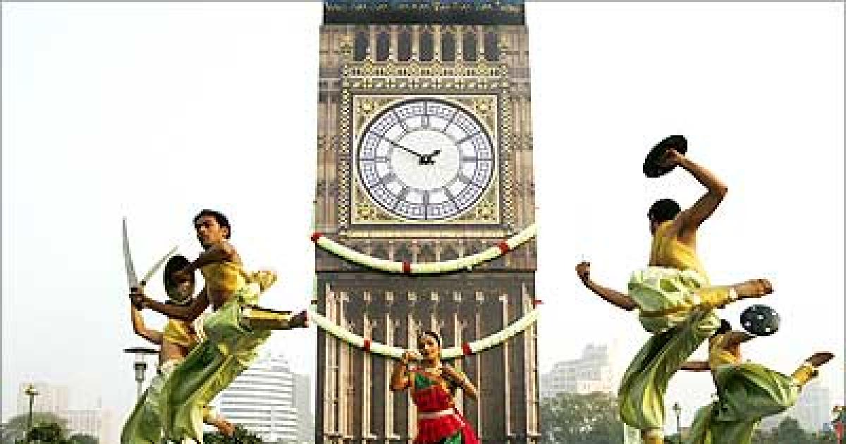 To celebrate the occasion dancers performed a tableau in front of a replica of London's famous Big Ben set up in New Delhi.