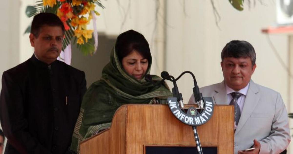 People’s Democratic Party president Mehbooba Mufti was administered the oath of office as the first woman chief minister of Jammu and Kashmir on Monday, at a ceremony in Raj Bhavan, Jammu.