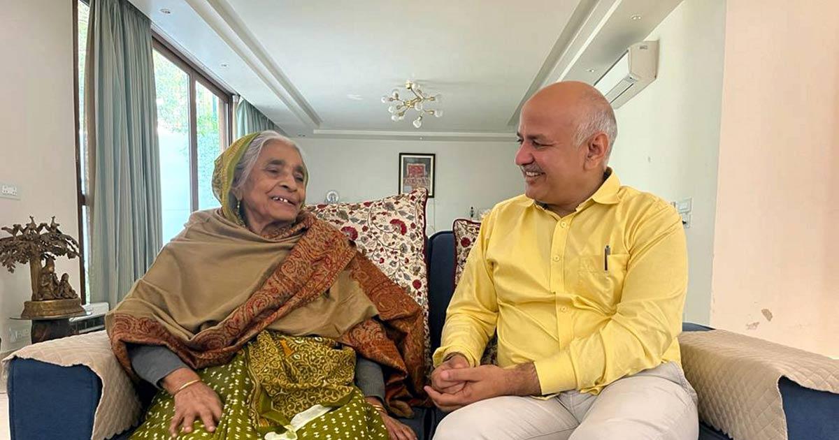IMAGE: Delhi Deputy Chief Minister Manish Sisodia with his mother before he headed to the CBI office in New Delhi on Sunday, February 26, 2023, for questioning in the liquor policy case. Sisodia was arrested later. Photograph: @AamAadmiParty/PTI Photo