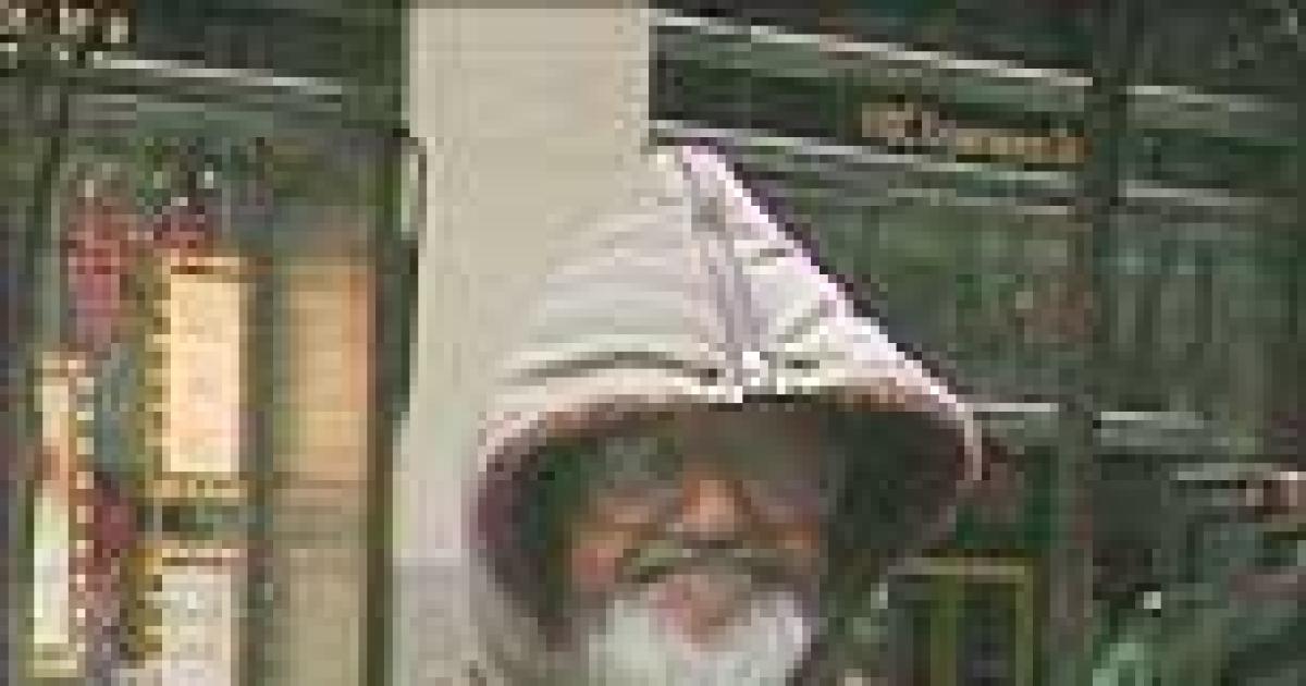 Image: A man protests against M F Husain outside Christie's in New York. Photograph: Snaps India.