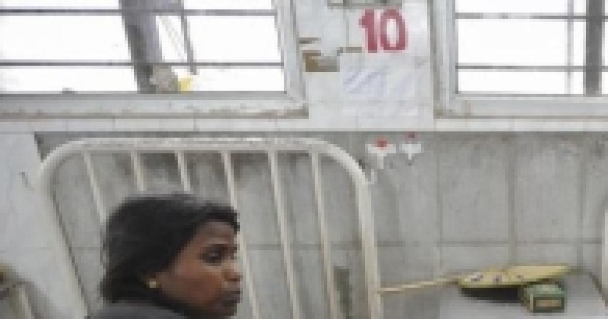 Image: A woman sits by her son who fell ill after consuming lunch in a school in Bihar