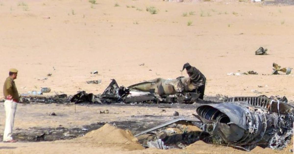The aircraft took off from the Nal air base for a routine mission and crashed at Shobhasar ki Dhani area, 12 km from Bikaner city, the officials said.