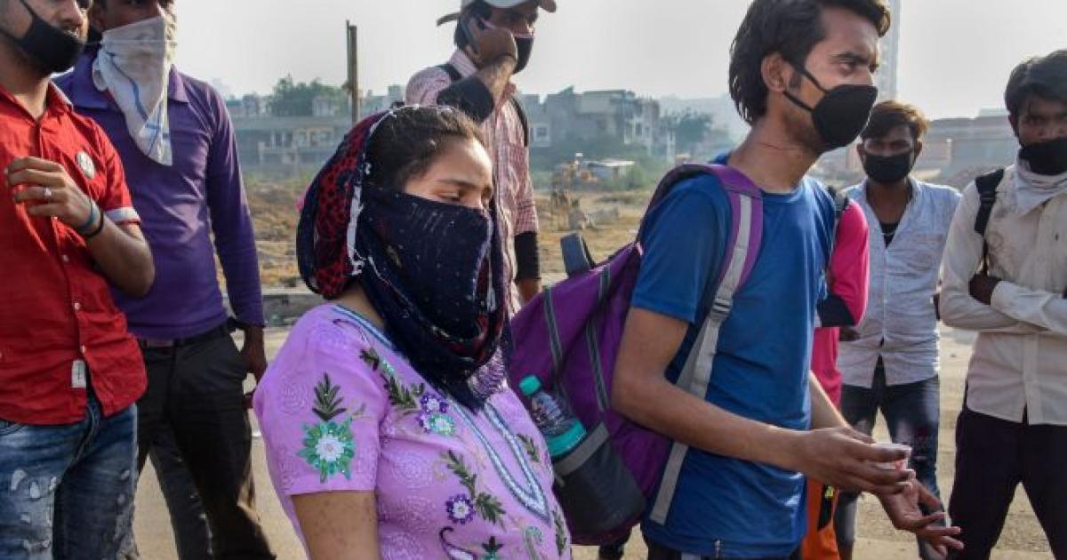 When a policeman asked the migrants not to sit on the roadside, they pleaded with him to take them in a shelter home.