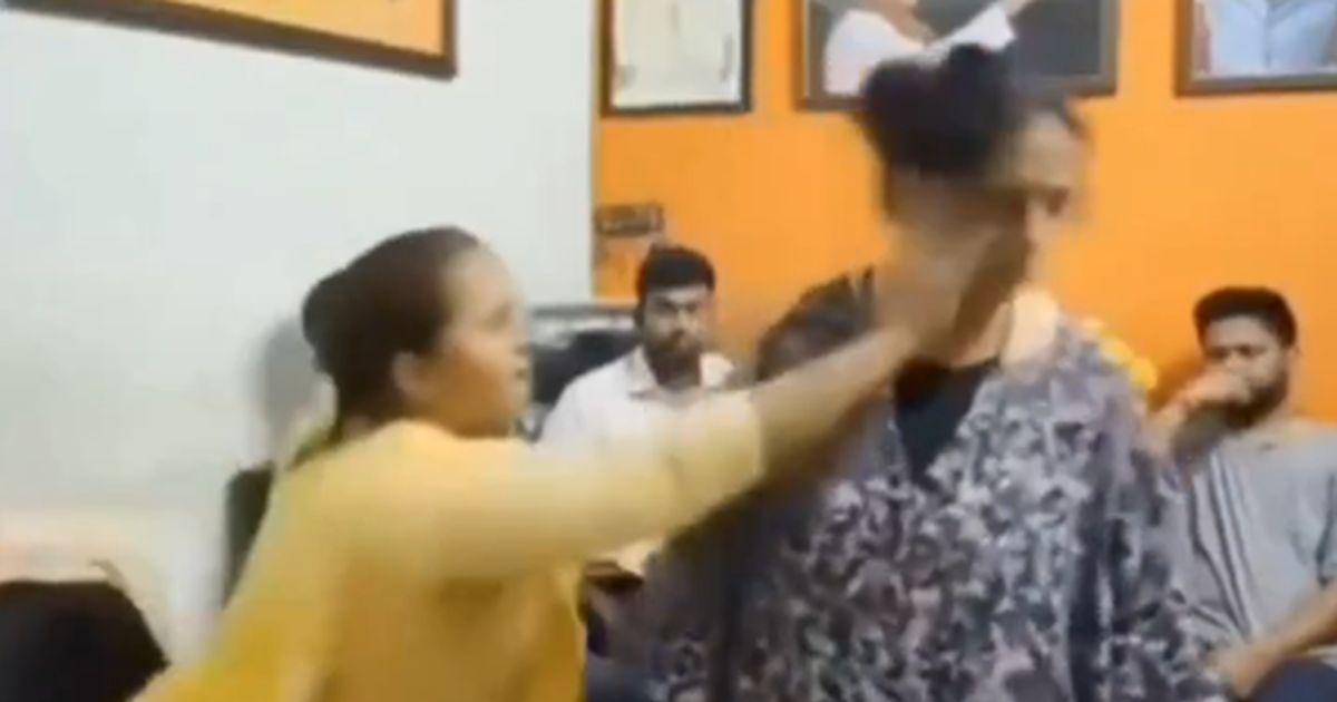 A video of a lady office-bearer of the Maharashtra Navnirman Sena slapping a woman after the latter allegedly made derogatory remarks about the Marathi language has surfaced on social media.