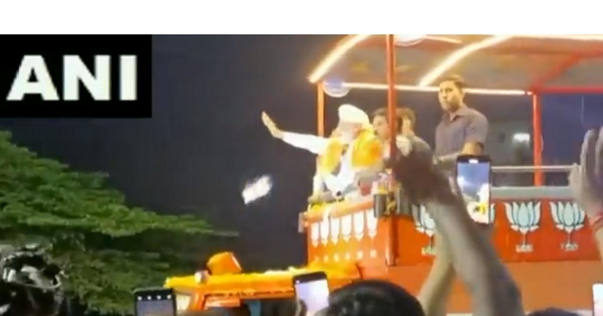 The incident happened when Modi, flanked by Mysuru-Kodagu MP Pratap Simha and former ministers KS Eshwarappa and SA Ramadas, was waving at people who gathered in large numbers on both sides of the roads.