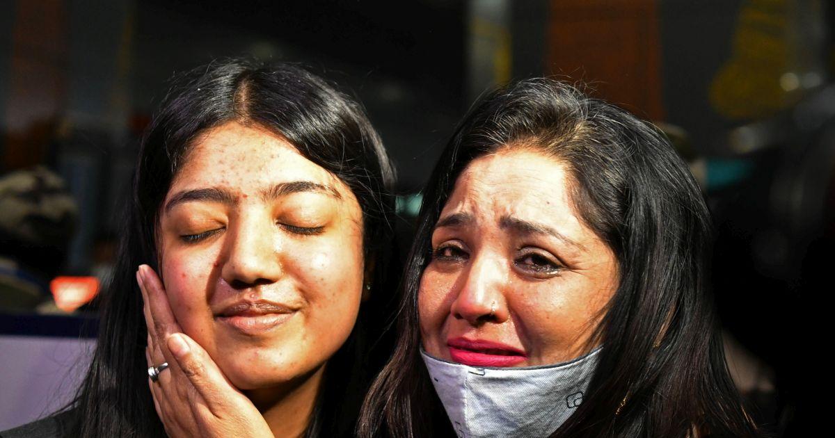 IMAGE: Indian students meet with their family members on arrival after being evacuated from Ukraine, at IGI Airport New Delhi on Monday. Photograph: ANI Photo