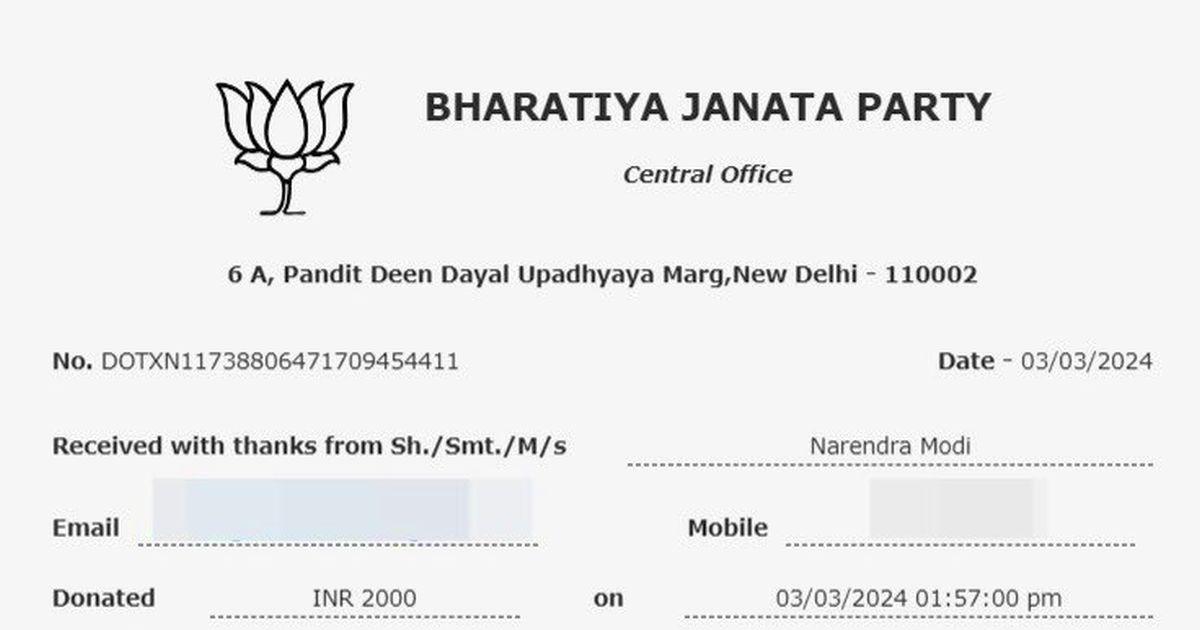 Modi also shared on X a screenshot of the receipt of his contribution.