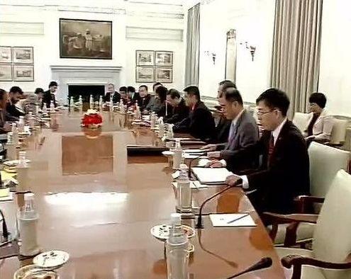 Image: Yang Jiechi discusses border issues with his Indian counterparts seated across the table. Photograph: ANI/ Twitter