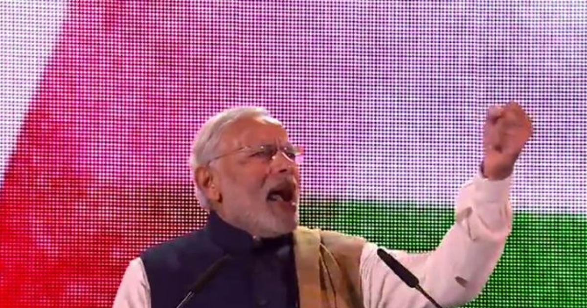 The crowd gathered here chanted Modi's name throughout the 80-minute speech.