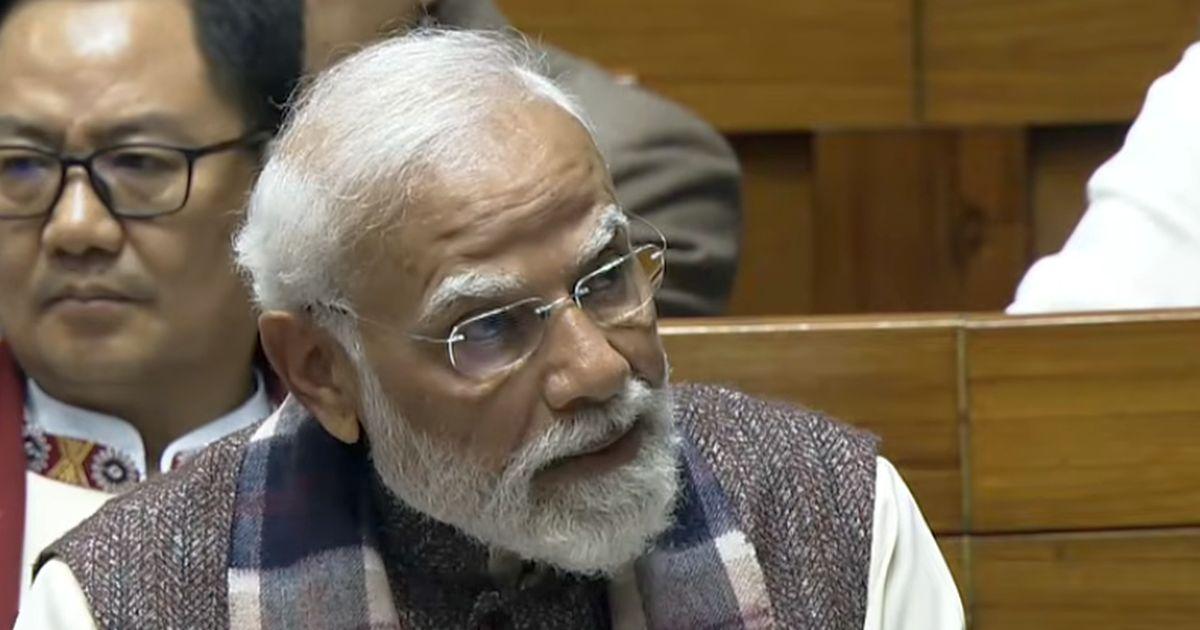 IMAGE: Prime Minister Narendra Modi initiates a discussion on 150 years of Vande Mataram in the Lok Sabha. Photograph: Sansad TV/YouTube