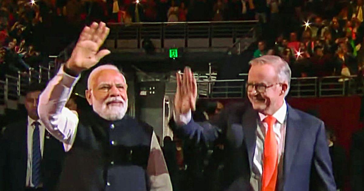Prime Minister Modi was accorded a rousing welcome by thousands of Indians across Australia at a diaspora event at the Qudos Bank Arena in Sydney, one of the country's biggest indoor stadiums.