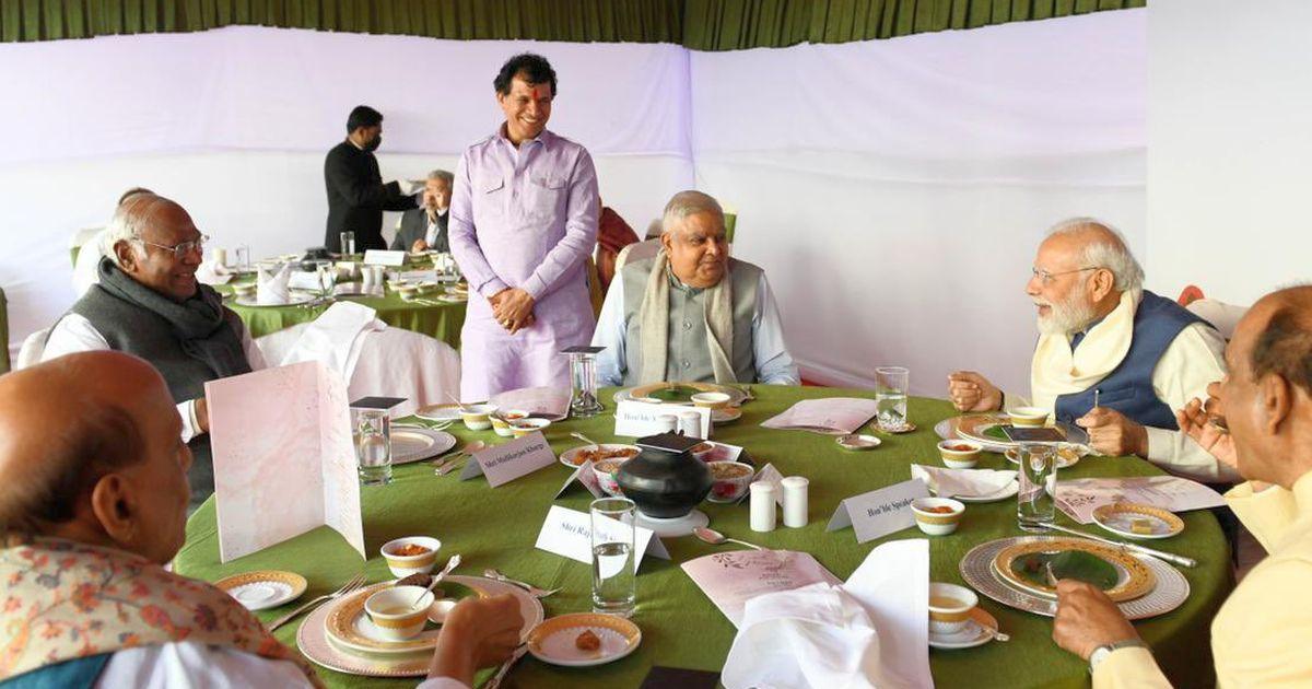 Prime Minister Narendra Modi on Tuesday enjoyed a millet lunch at Parliament along with Congress president Mallikarjun Kharge, Rajya Sabha Chairman Jagdeep Dhankhar, Defence Minister Rajnath Singh and other MPs.