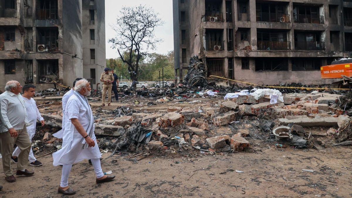 He spent around 20 minutes inspecting the site, where the Boeing 787 Dreamliner aircraft (AI171) crashed into a complex of B J Medical College in the Meghaninagar area shortly after taking off on Thursday afternoon.