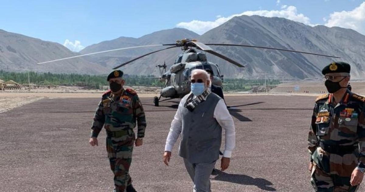 Modi, accompanied by Chief of Defence Staff General Bipin Rawat and Army Chief General Manoj Mukund Naravane, reached Leh around 9.30 am, sources said.
